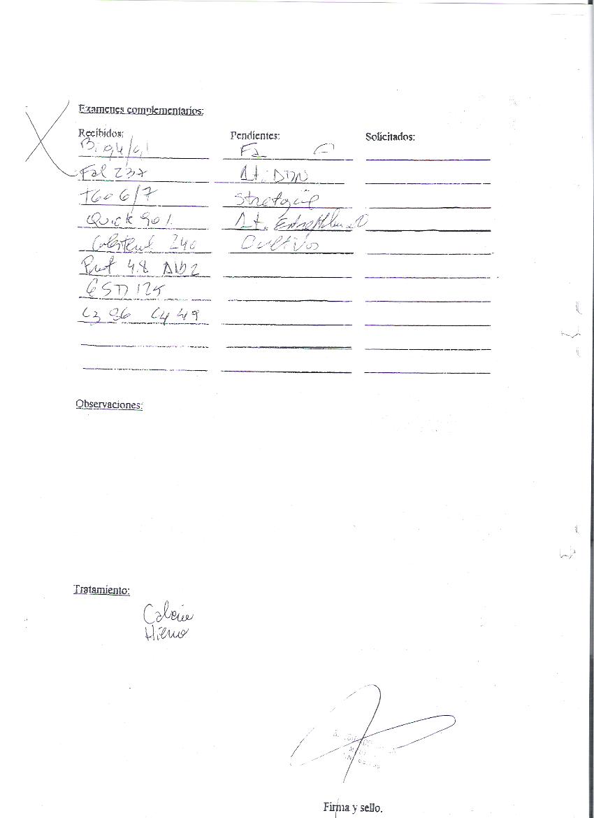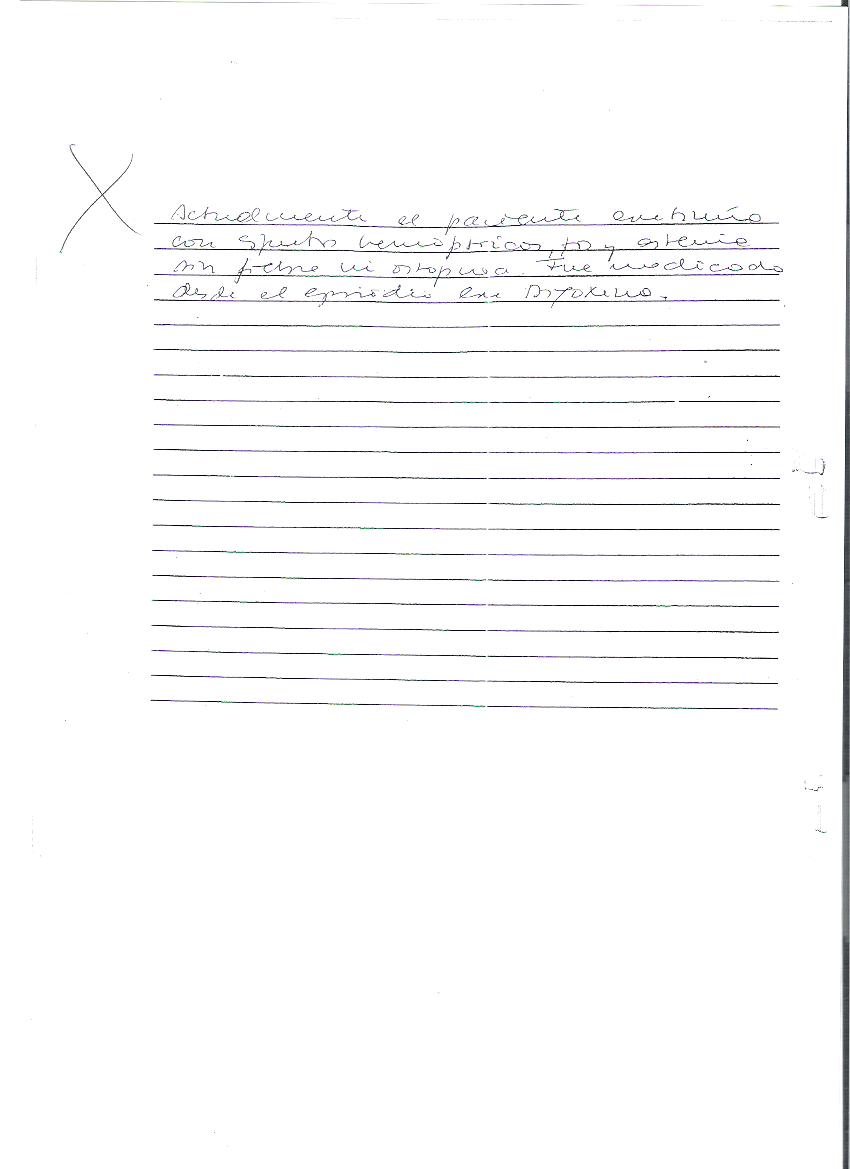 - Folio 7 10/04/96 Descripción: «insuficiencia aortica y mistral (hallazgos no observados en eco cardio de octubre 95)»