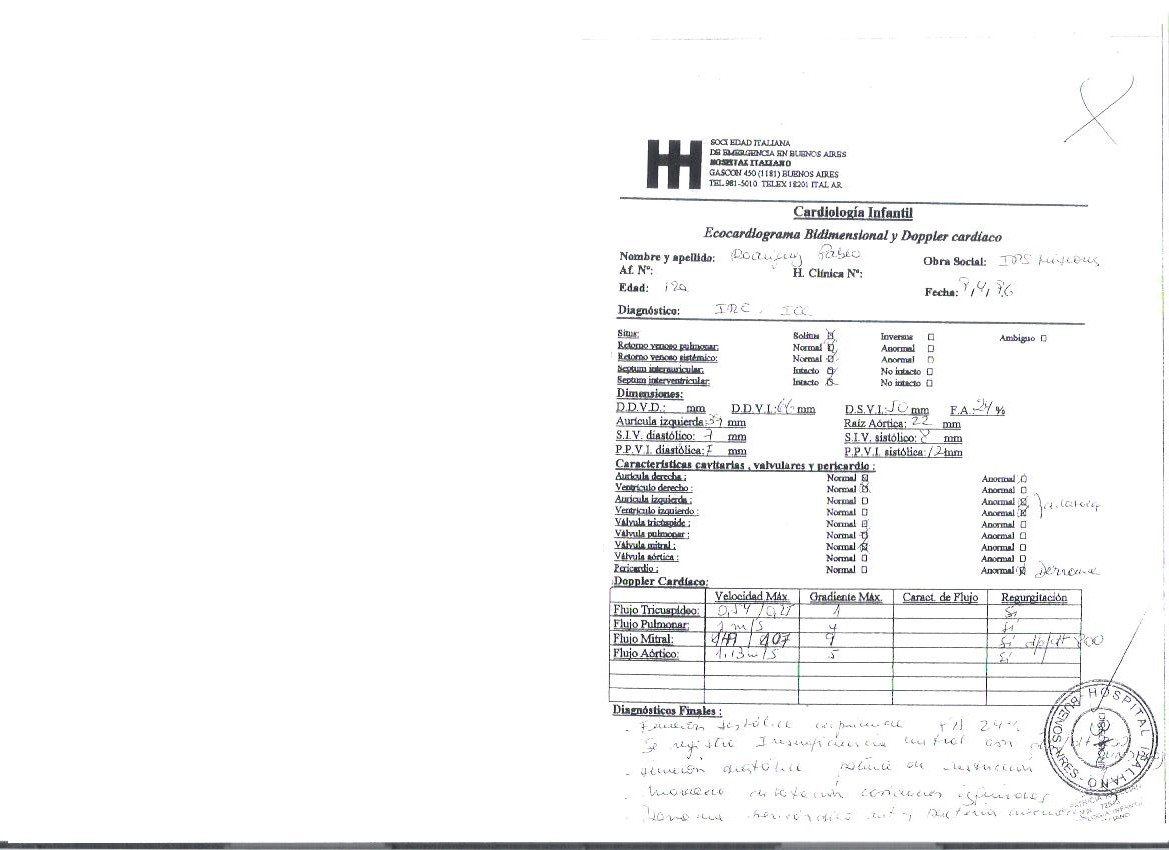 - Folio 32 10/04/1996 Ecocardiograma Bidimensional y Doppler cardiaco