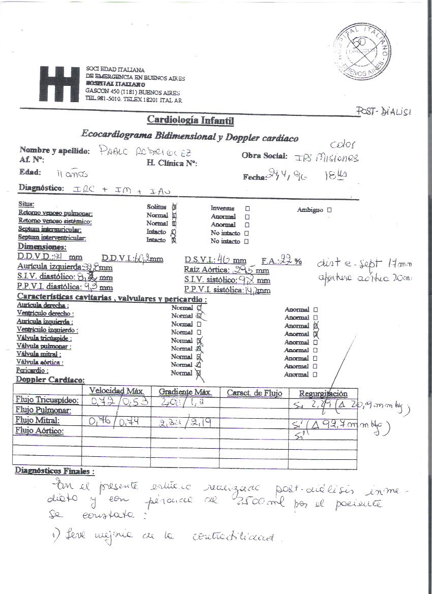 - Folio 31 09/04/1996 Ecocardiograma Bidimensional y Doppler cardiaco