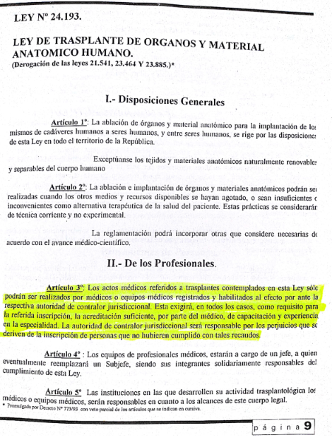 1 – JUICIO POSADAS: Por violación a la Ley de trasplante 24.193