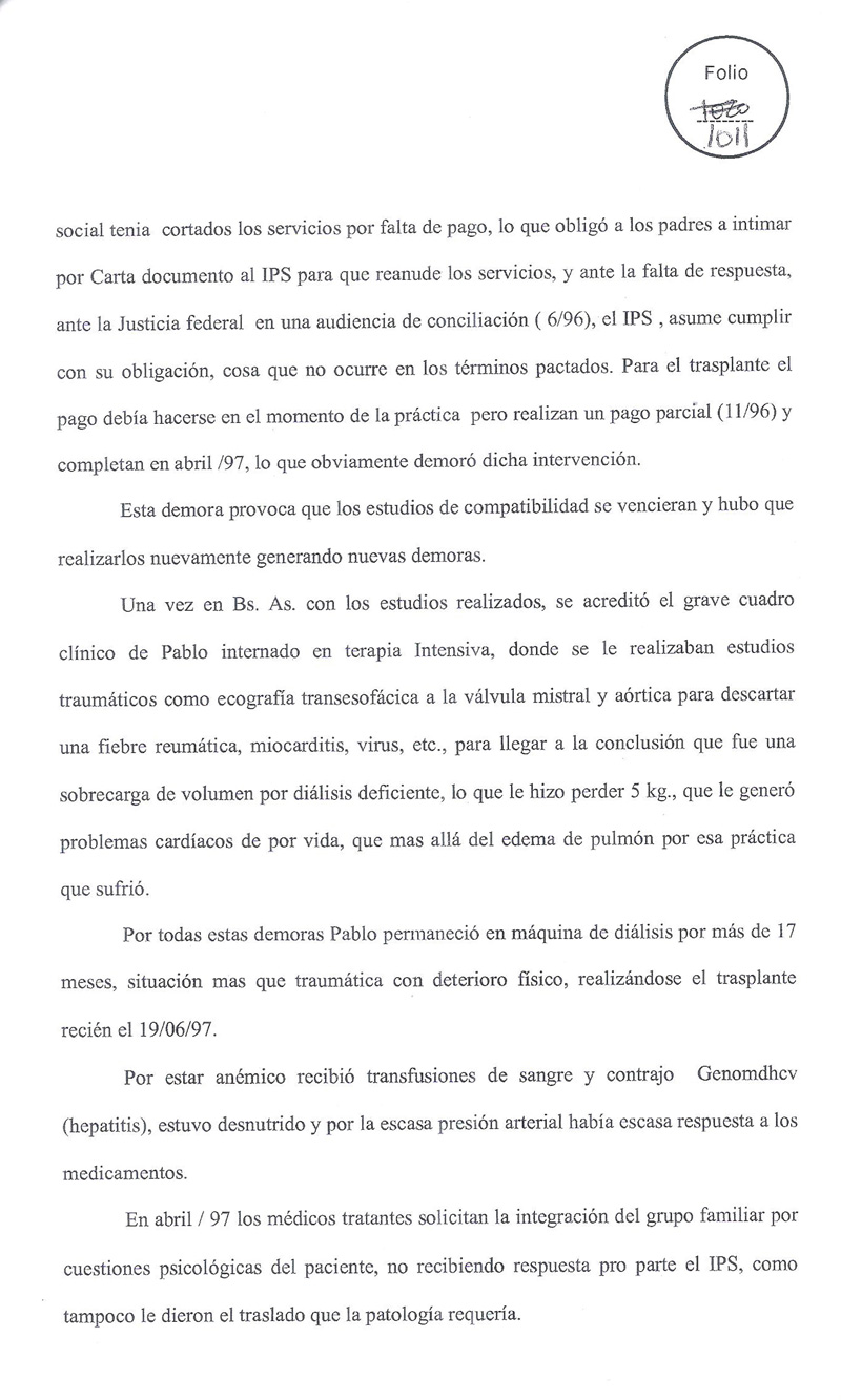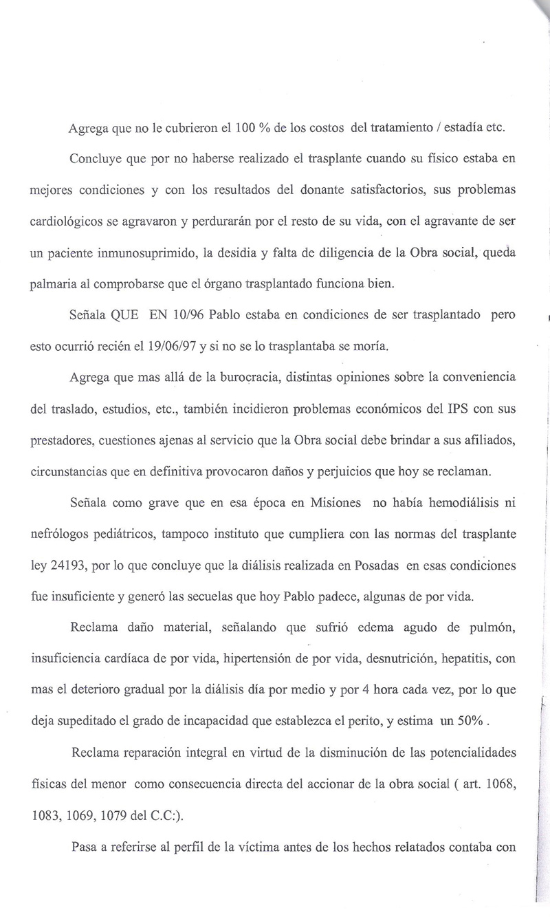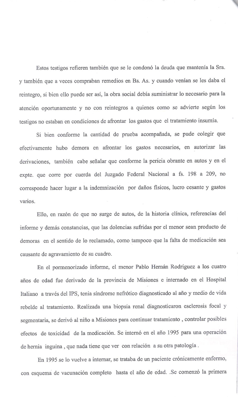 En el año 1996 Instituto de Previsión Social de Misiones (IPSM) prevaleció una situación económica, ante los derechos de un niño, violando la Ley de trasplante.