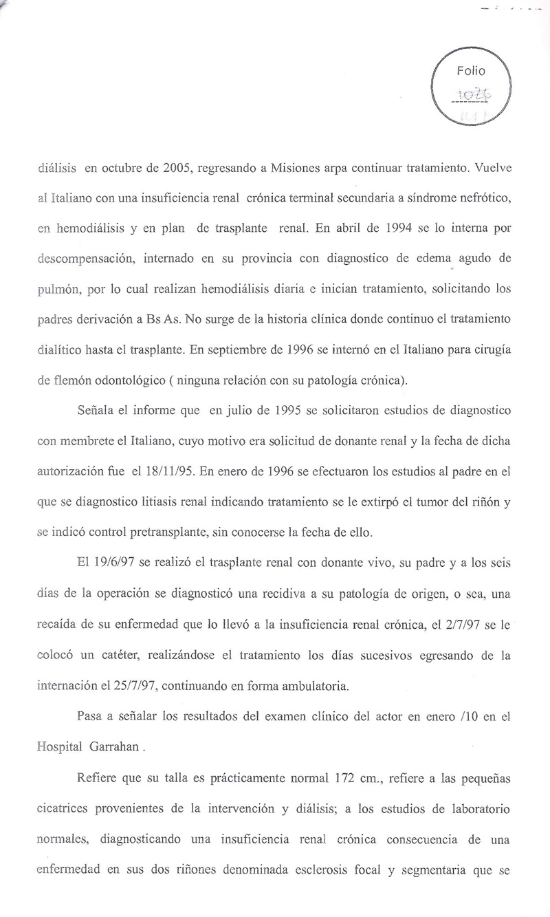 Tenía desde 1989 su historia clínica en el Hospital Italiano de Buenos Aires.